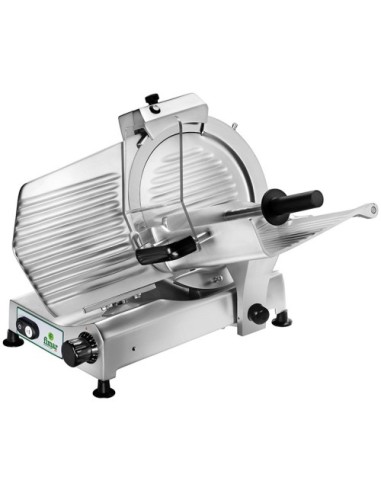 Affettatrice a gravità Fimar con diametro della lama da 30 cm. Affettatrice a gravità compatta con Struttura in lega leggera di alluminio anodizzato