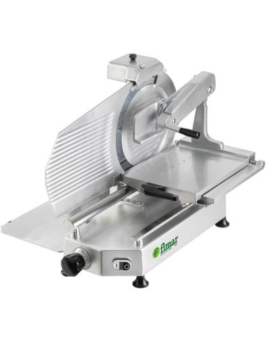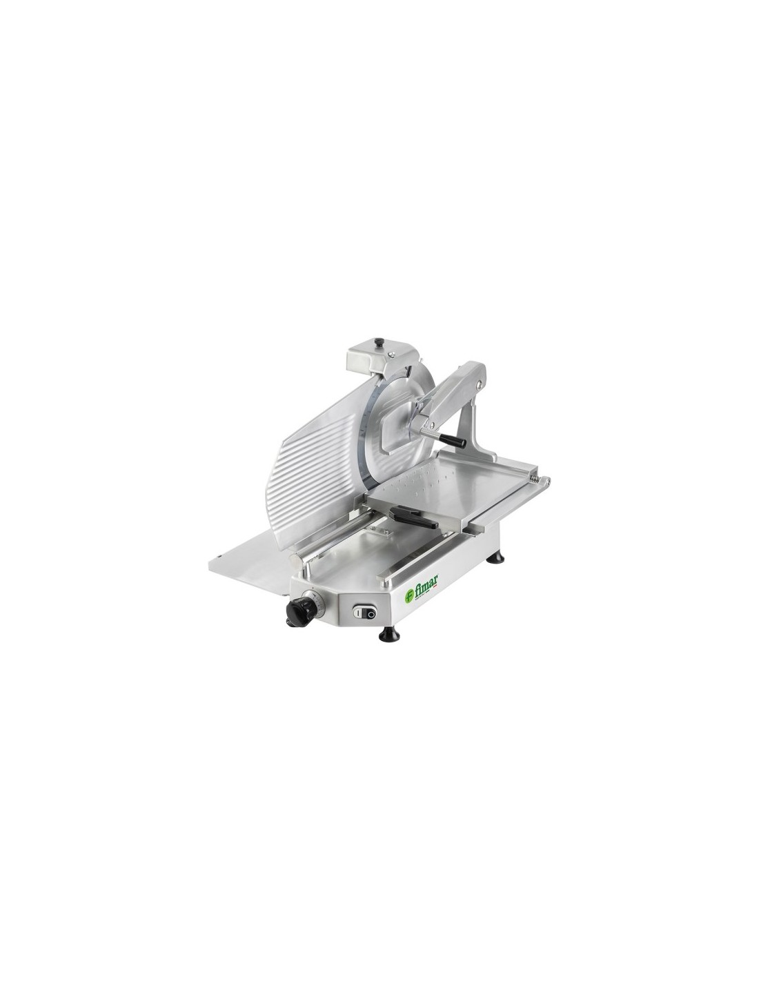 Affettatrice verticale Fimar. Affettatrice verticale professionale con lama da 33 cm. Affettatrice verticale con Struttura in lega leggera di alluminio anodizzato con Blocco piatto vela e Carrello Fisso