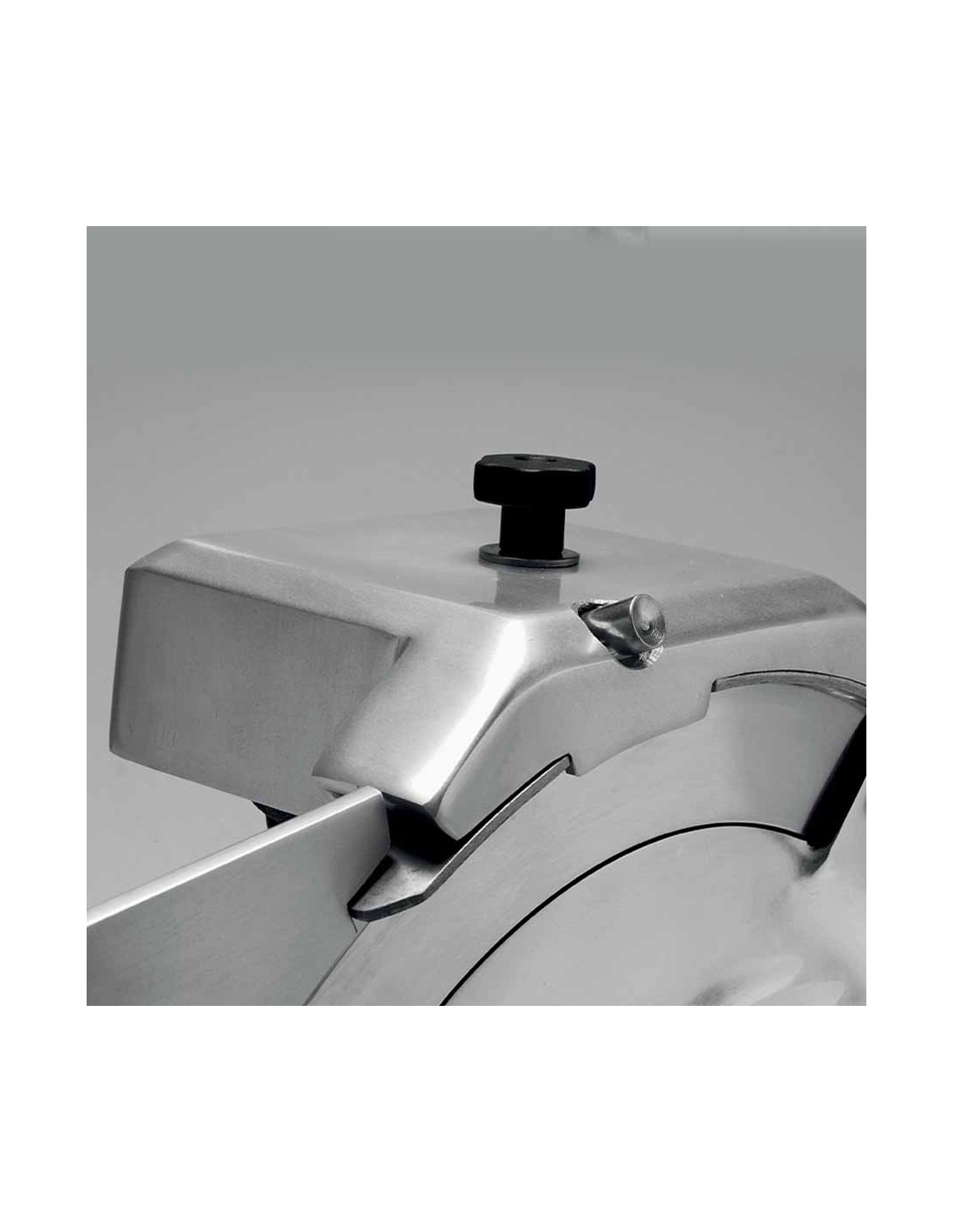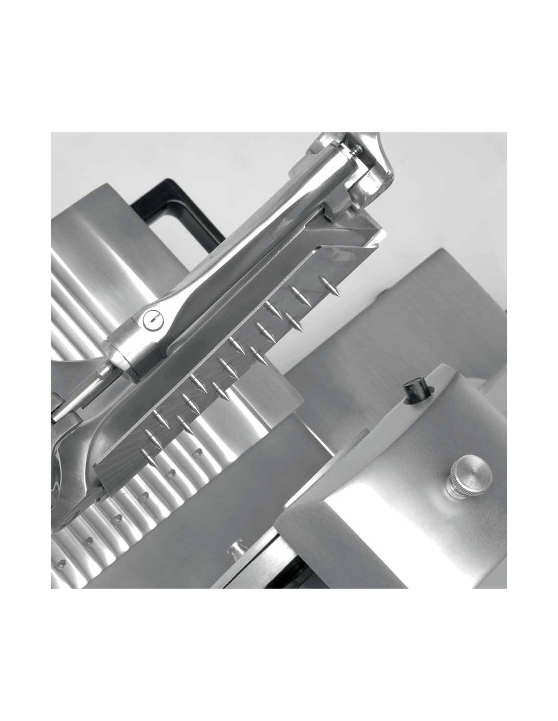 Affettatrice verticale luxury di Fama Industrie. Macchina per affettare con diametro di 330 cm, struttura Fusione in lega di alluminio anodizzato con Lama forgiata in acciaio temperato ed Anello di protezione alla lama