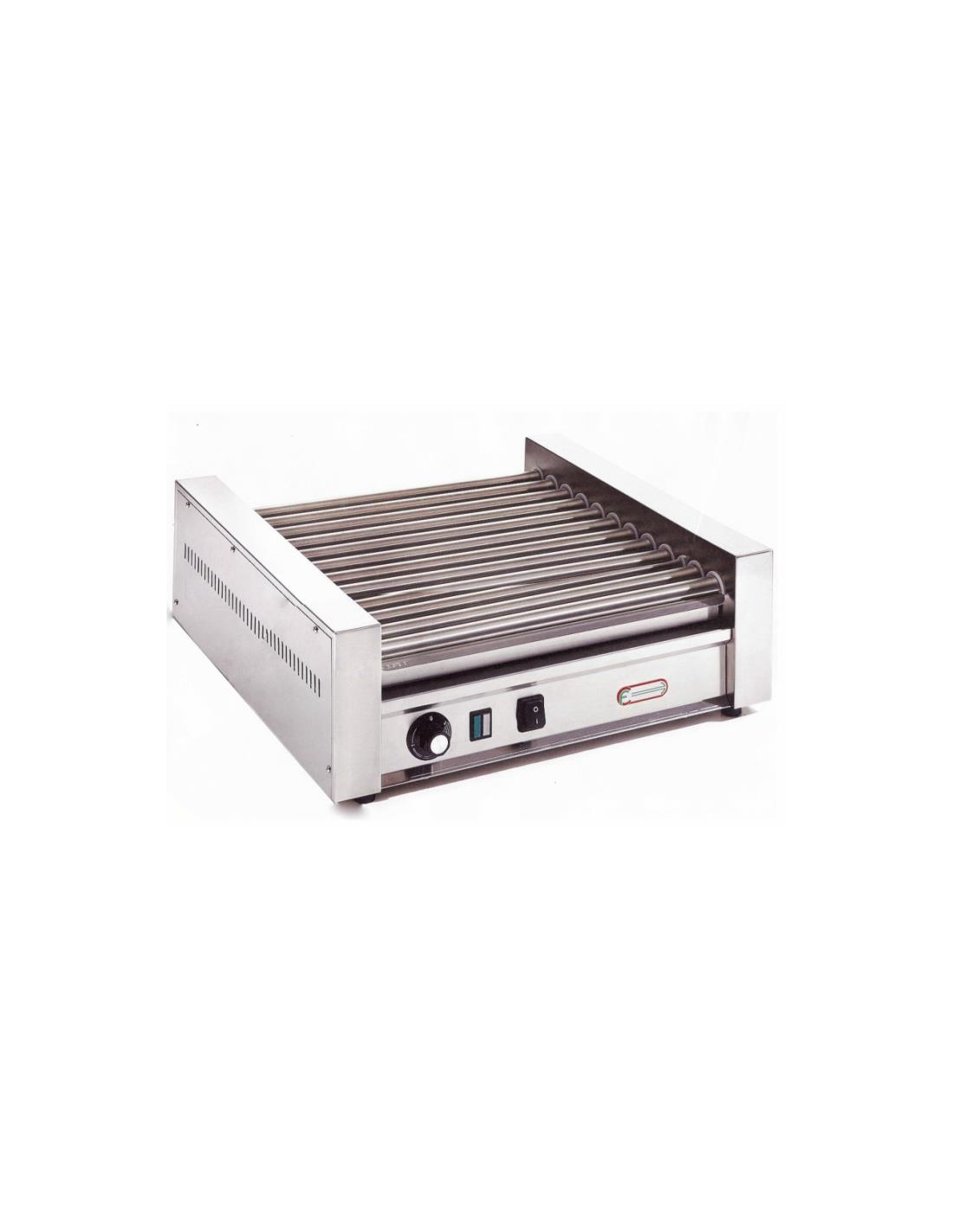 Cuoci wurstel elettrico con 12 rulli in acciaio inox. Macchina per cuocere wurstel da banco a 2 zone di riscaldamento