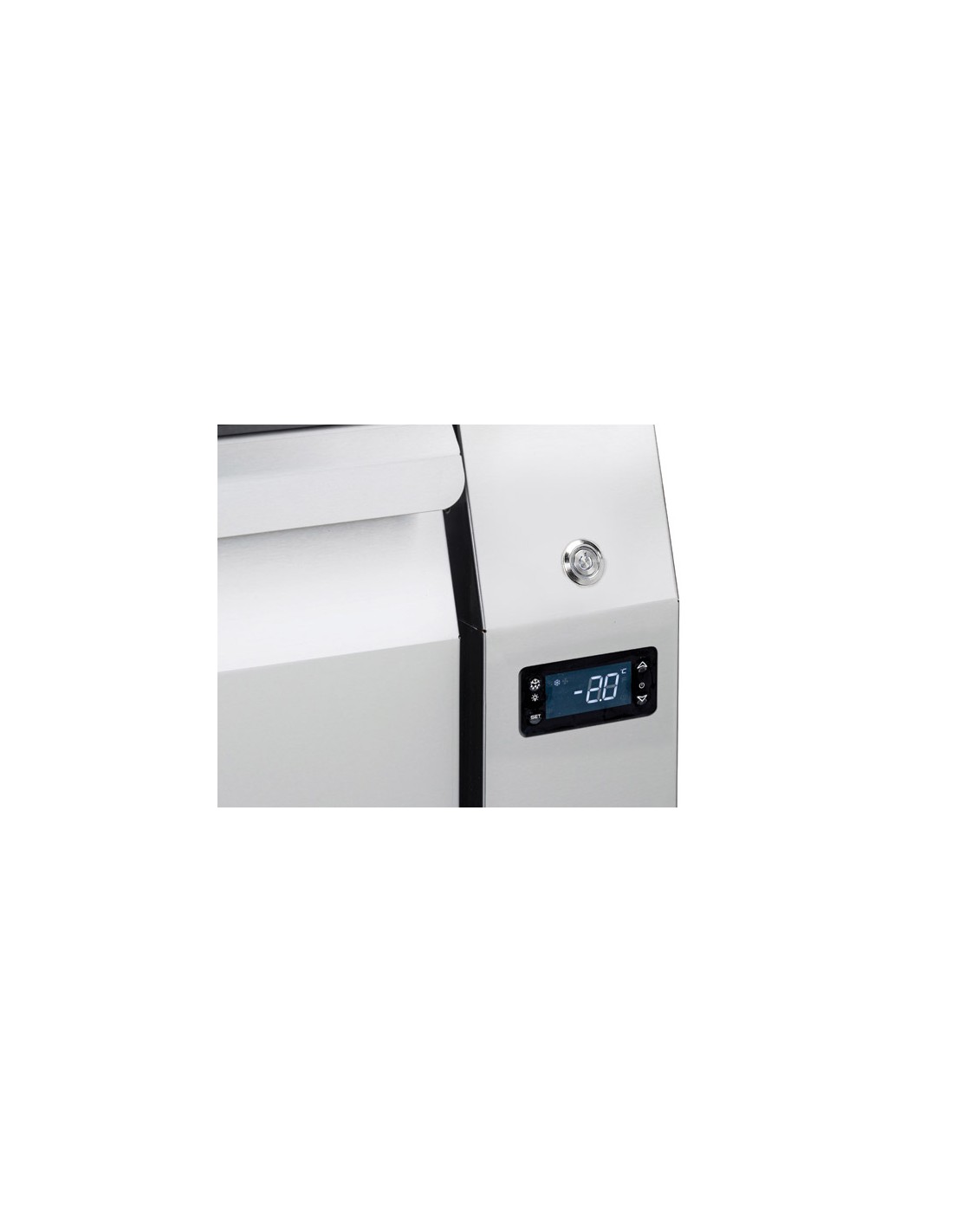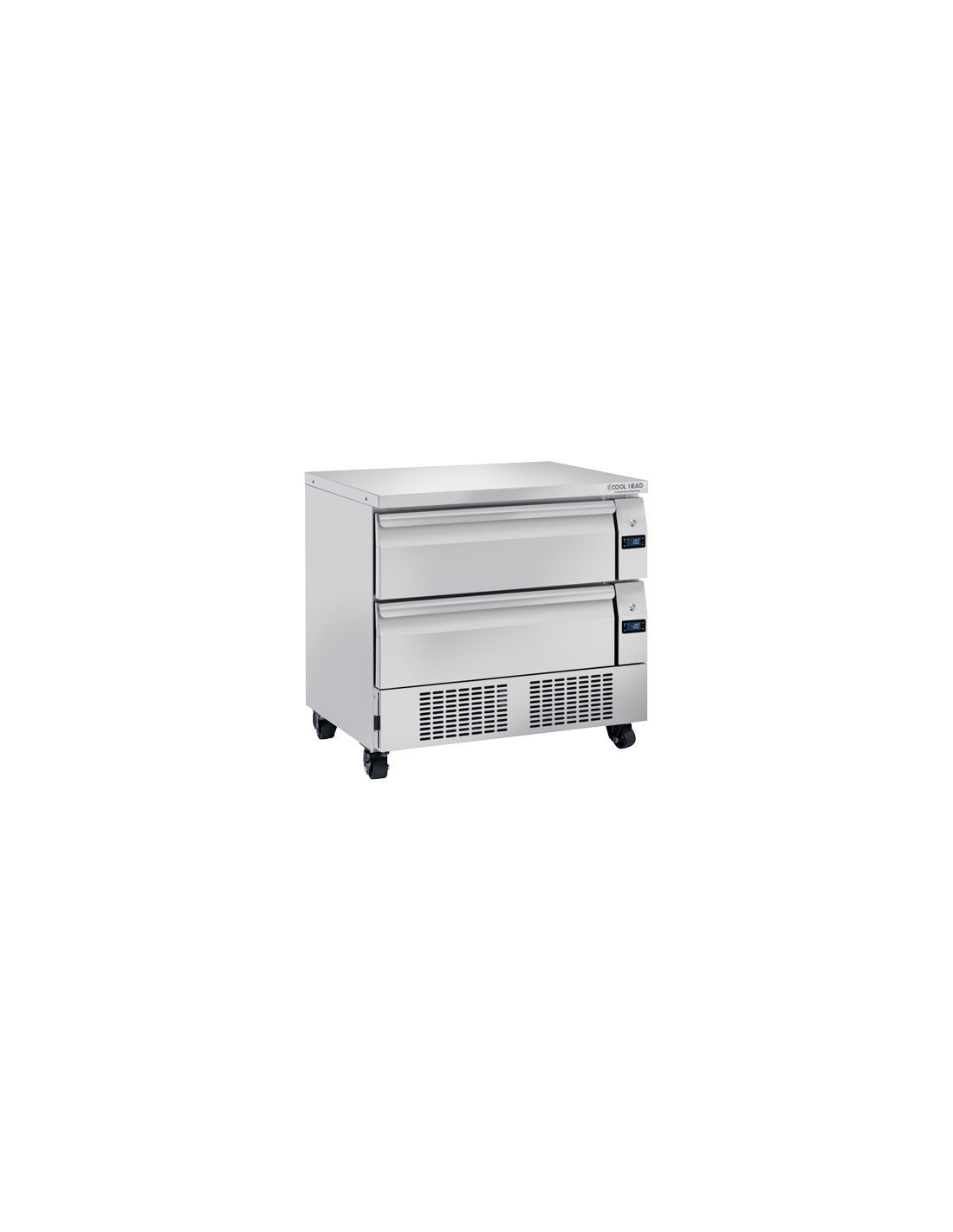 Cassettiera refrigerata in acciaio inox dalle forme pulite ed essenziali. Adatto a 4 teglie GN 1/1 (non incluse). Modello a doppia temperatura (facile da convertire da Chiller in Freezer o viceversa)