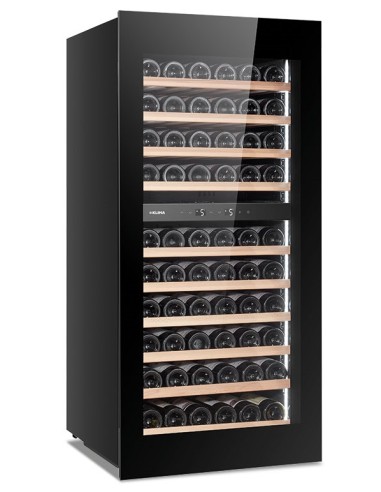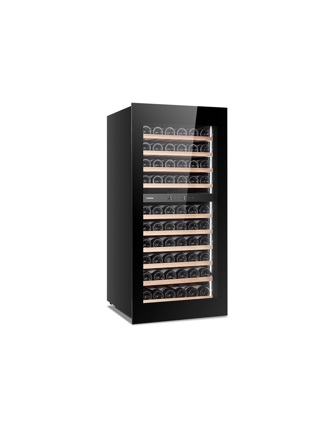 Frigo per vino da incasso Klimaitalia. Frigo vino doppia temperatura ventilata con vetro colore nero senza cornice con 8 mensole in legno di faggio: