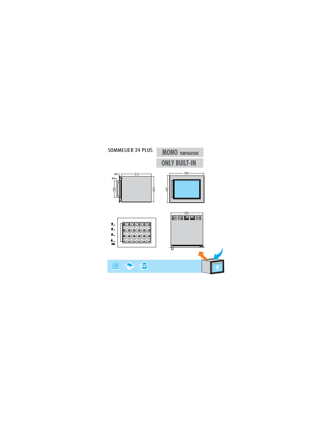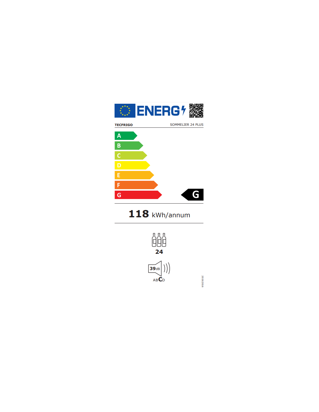 Tipo di sbrinamento automatico elettrico SISTEMA NO FROST. Luce a led bianca sul ripiano superiore. Capacità di circa N° 24 bottiglie da 0,75 Lt. Livello Rumorosità: 39 dB. Consumo: 118 kWh/annum.