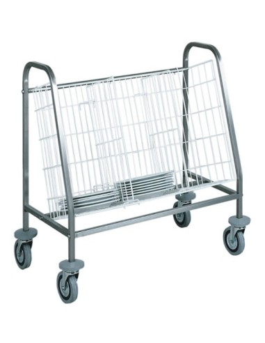 Carrello in acciaio inox per ritiro, distribuzione e stoccaggio vassoi, piatti, tazze Forcar per 100 piatti con diametro di 23 cm, 1 cesto