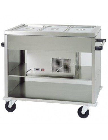 Carrello refrigerato Forcar. Carrello di servizio refrigerato con struttura interamente in acciaio inox AISI 304 adatto per 3 bacinelle Gastronorm 1/1 150h mm