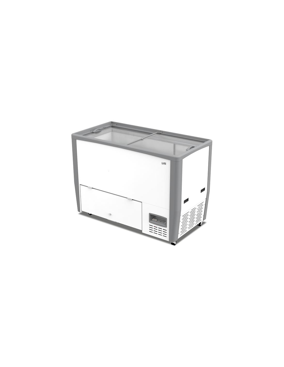 Pozzetto congelatore colore bianco grigio. Pozzetto congelatore bianco e grigio con porte a vetro scorrevoli per gelato e alimenti surgelati da 634 litri