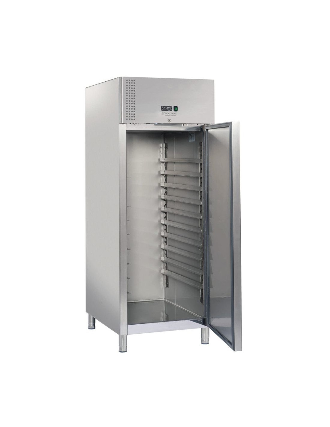 Congelatore verticale per pasticceria Cool Head per teglie 600x400 con capacità max 20 teglie. Struttura esterna ed interna in acciaio Inox.