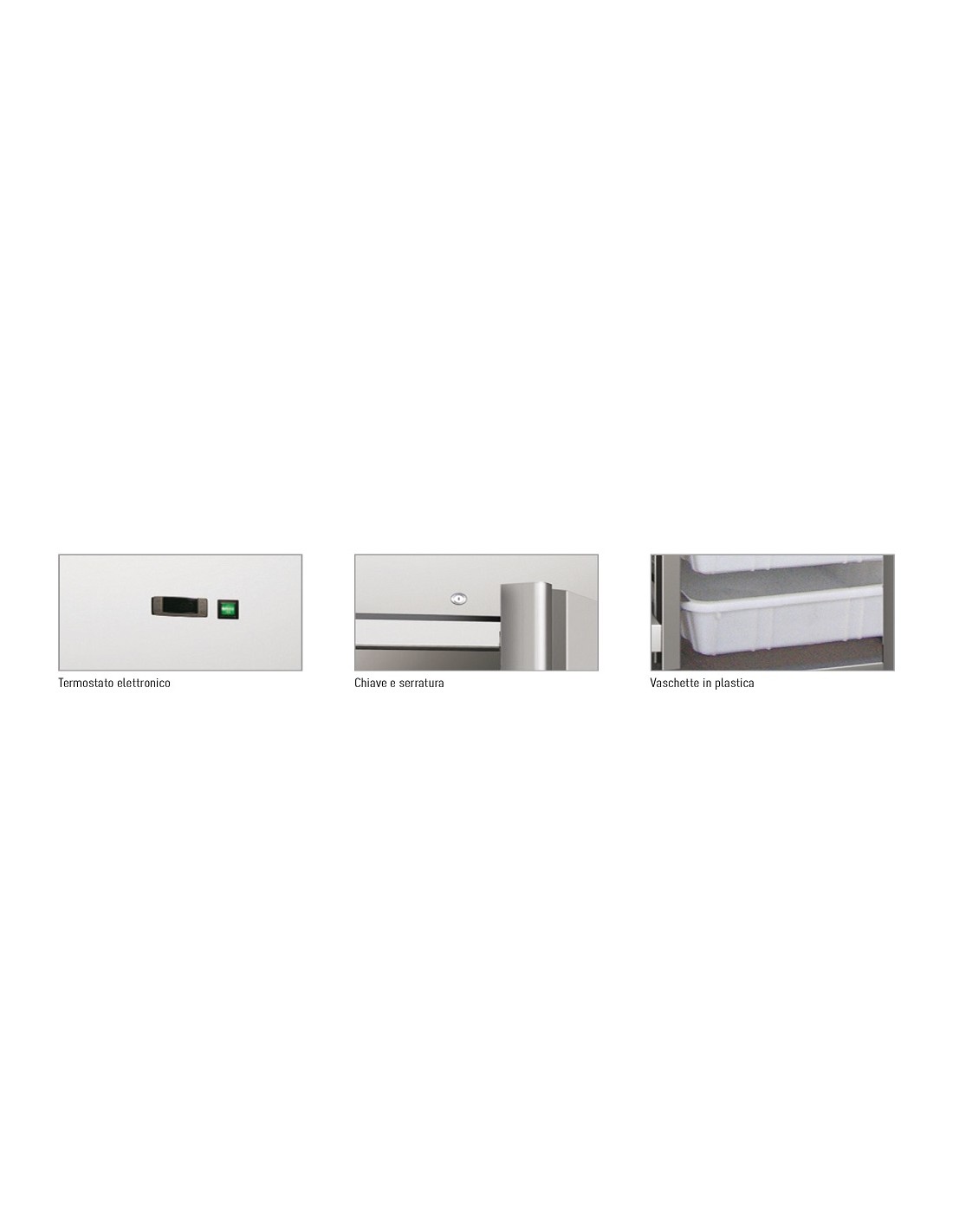 Superficie interna ed esterna in Acciaio Inox AISI 304. Termostato elettronico. Rumorosità dB 42. Spessore isolamento 60 mm