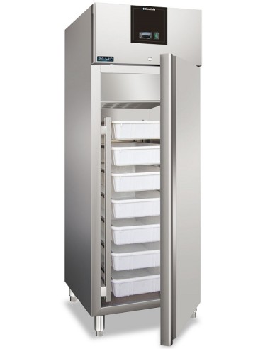 Armadio congelatore verticale per pesce di Klimaitaia. Armadio congelatore in acciaio con N° 7 vaschette in plastica Dimensione mm 600 x 405