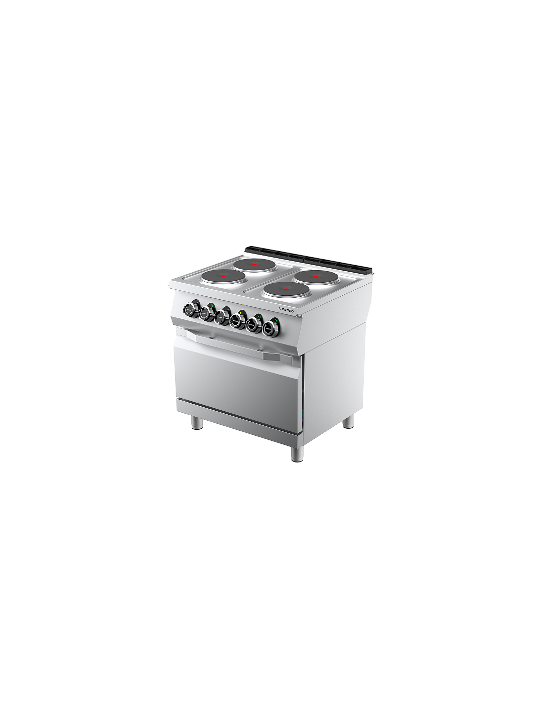 Cucina elettrica con 4 piastre elettriche tonde. Cucina elettrica con 4 fuochi e forno elettrico statico GN 2/1