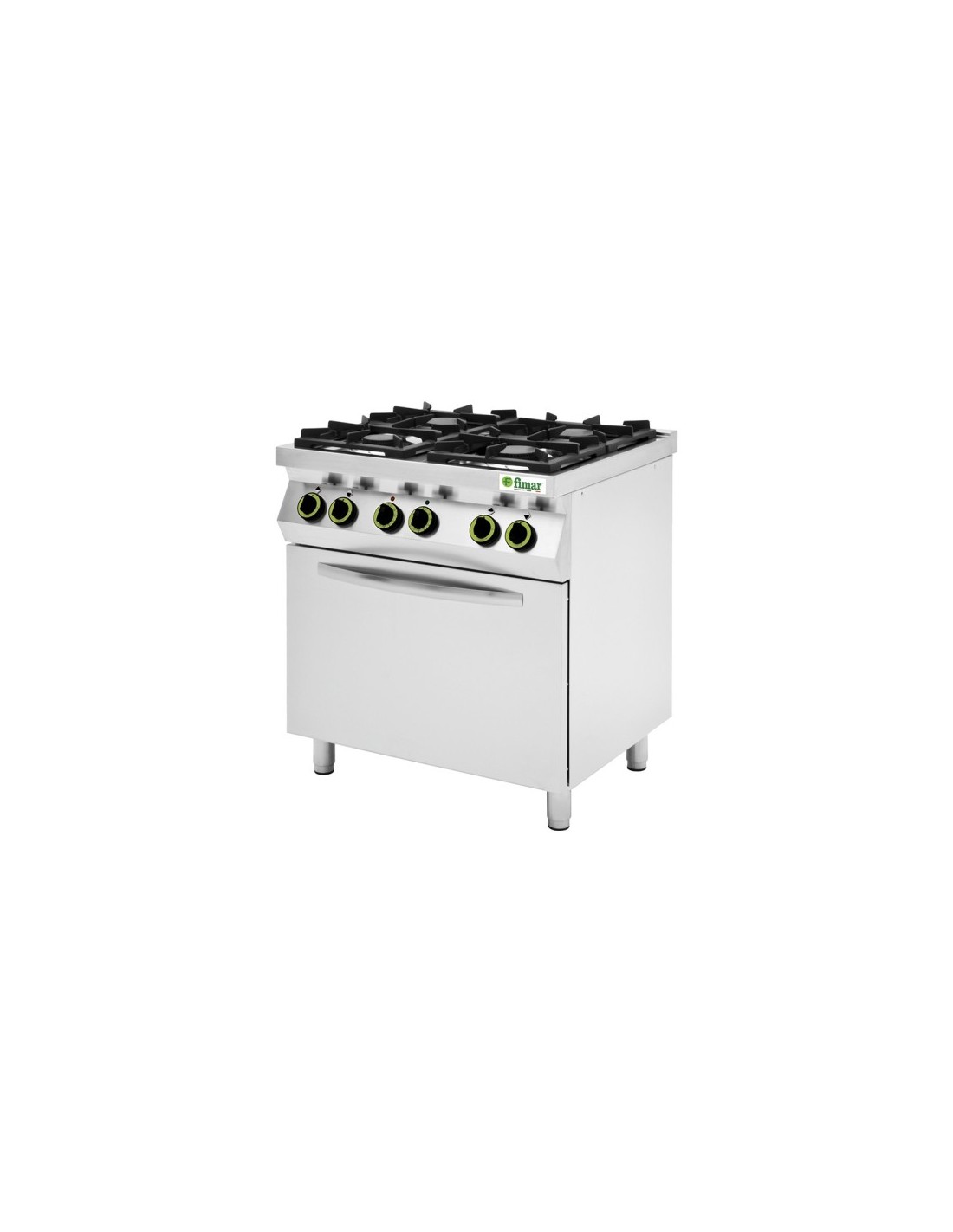 Cucina professionale a gas Fimar con forno elettrico GN 1/1 e piano cottura a 4 fuochi in acciaio Inox AISI 304. Cucina professionale con Struttura, maniglia e piedi, regolabili in altezza, in acciaio Inox 430, griglie indipendenti