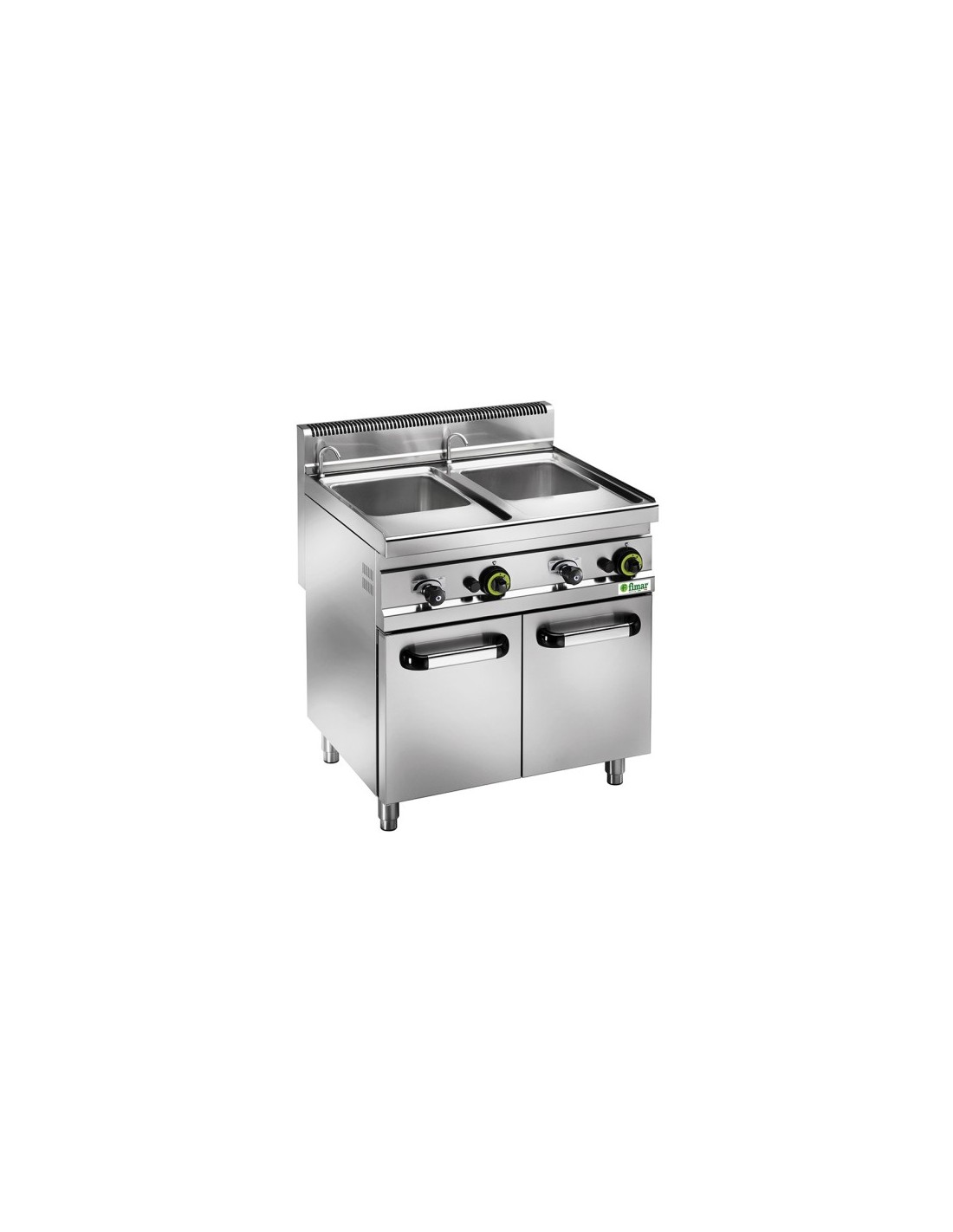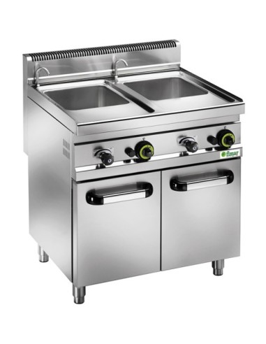 Cuocipasta a Gas Fimar. Bollitore per pasta a gas su Mobile con doppia vasca da 25 litri, Struttura, coperchi, cestelli in Acciaio Inox