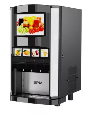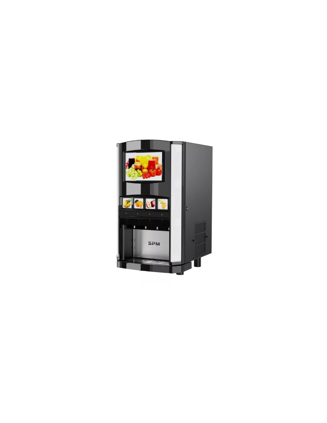 Dispenser di succhi di frutta, per sciroppi concentrati di SPM DRINK. Dotata di 4 contenitori per il succo concentrato da 4 litri ciascuno.