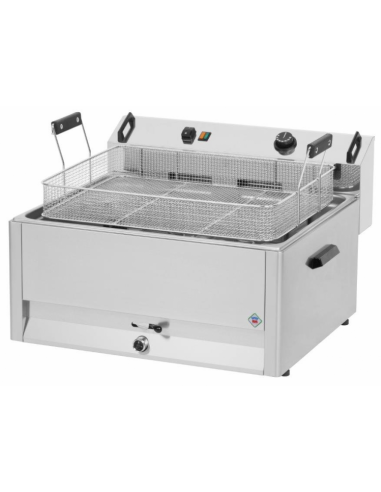 Friggitrice elettrica per pasticceria di Beckers. Friggitrice elettrica con vasca grande da 16 litri con rubinetto per scarico olio.