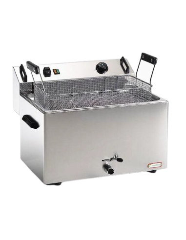 Friggitrice professionale elettrica da banco vasca grande per frittura Capacità 16 Lt. Friggitrice elettrica per pasticceria con rubinetto per lo scarico dell' olio