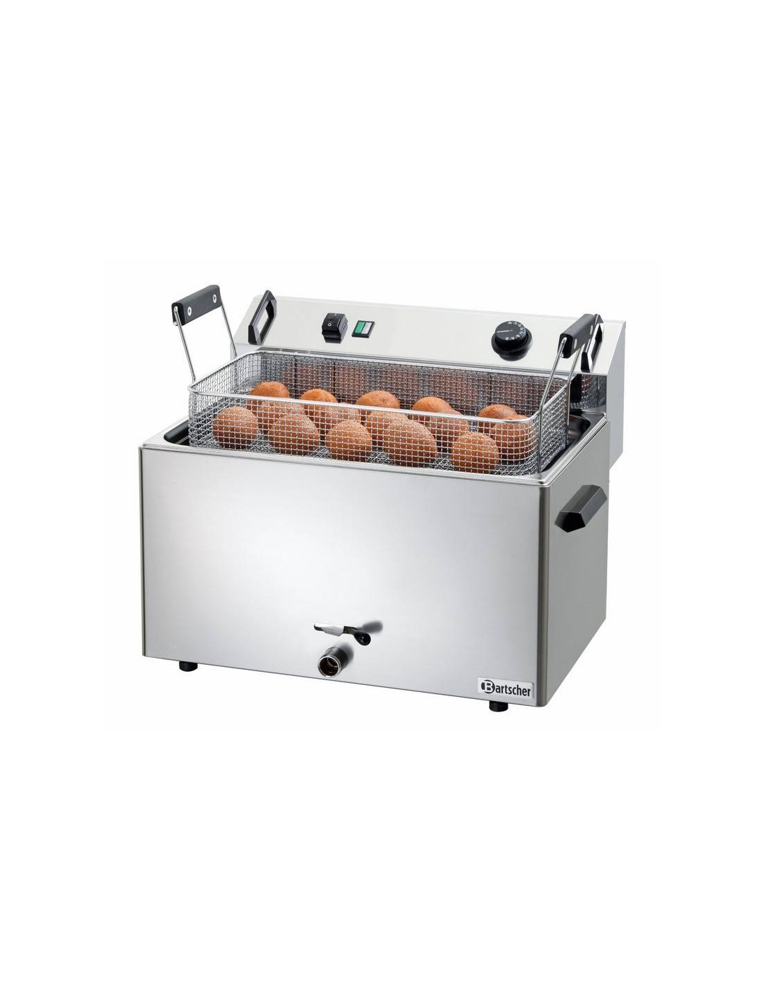 Friggitrice elettrica Pasticceria di Bartscher. La friggitrice elettrica da banco per pasticceria è dotata di un cesto grande con capacità 16 litri.
