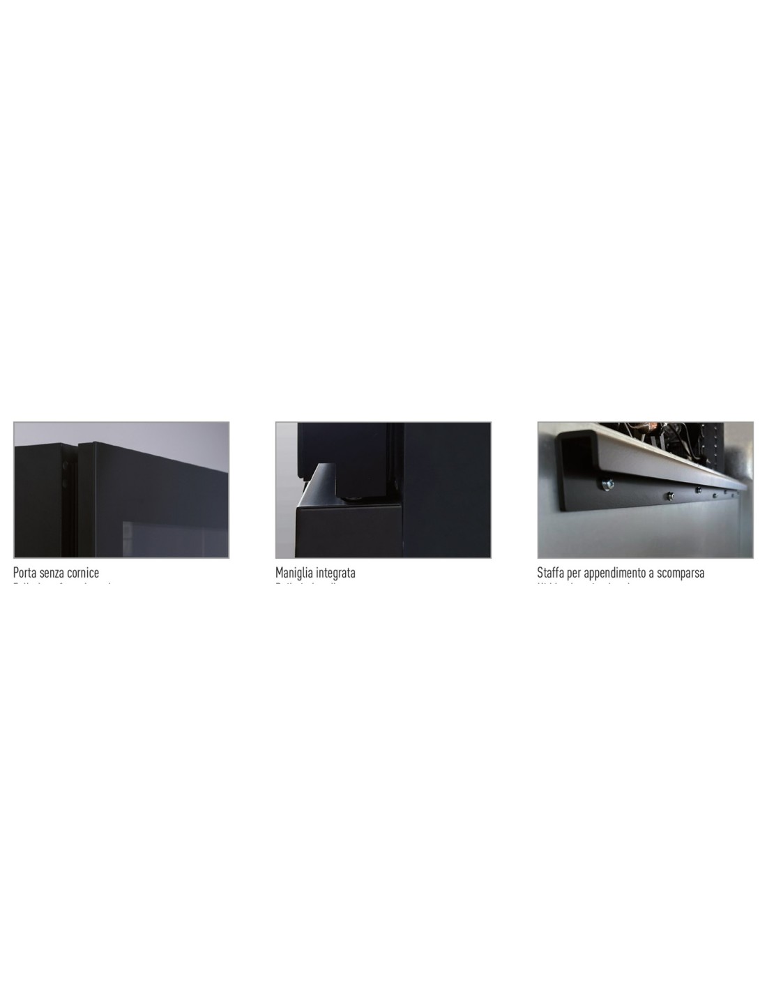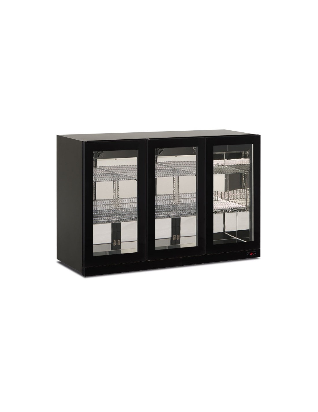 Frigorifero pensile Nero Klimaitalia. Frigorifero pensile con 3 ante battenti con 6 ripiani, capacità 280 litri per bottiglie e lattine.