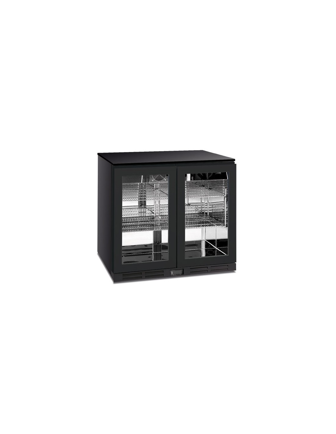 Frigorifero bevande retro banco Klimaitalia per bevande. Frigo bevande orizzontale retro e sotto banco nero con interno in acciaio Inox AISI 304. Vetrina frigorifera con Illuminazione 1 led orizzontale