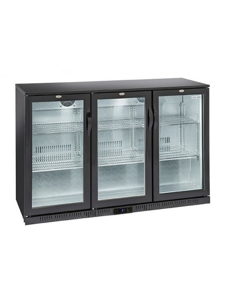 Frigorifero bevande Retro banco di Cool Head. Frigorifero professionale orizzontale con tre porte battenti per bevande, 6 ripiani regolabili.