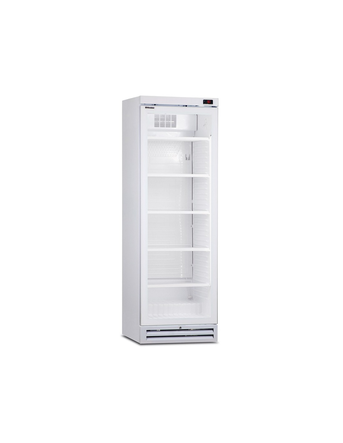 Armadio frigorifero e congelatore bianco con porta a vetro per bevande Klimaitalia. La Vetrina frigorifera verticale ha una temperatura positiva e negativa con 2 Led verticali