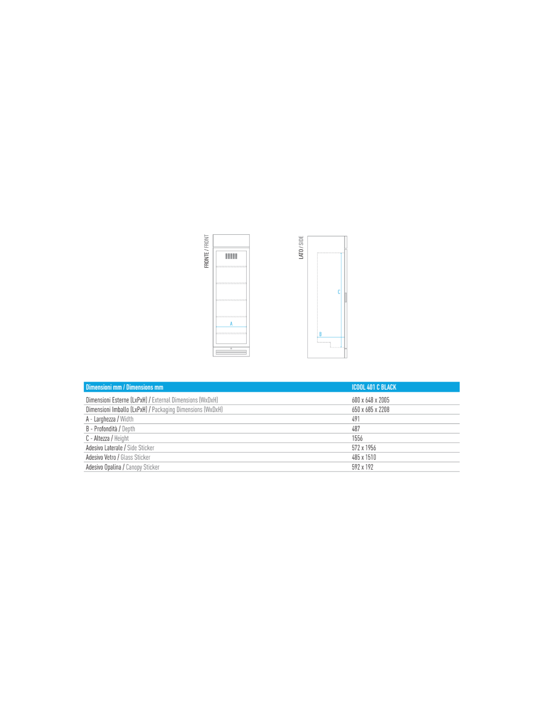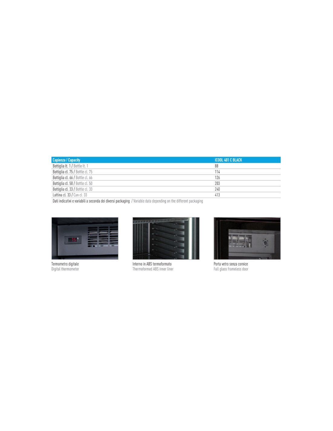 Frigorifero per bevande Colore Nero di Klimaitalia con spot luminoso, porta a vetro e 5 ripiani, 2 luci led verticali. Questo frigorifero per bevande ha una struttura in Lamiera preverniciata con trattamento anticorrosione ed Interno in ABS.