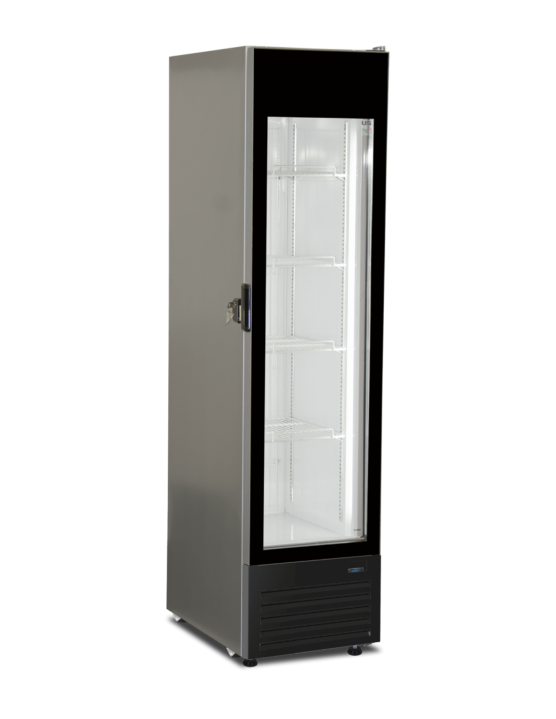 Vetrina refrigerata Ucinque per gelati e torta gelato. La vetrina refrigerata pasticceria 4 griglie, porta full glass e colore esterno grigio silver. Profondità di 40 cm circa da poter posizionare ovunque