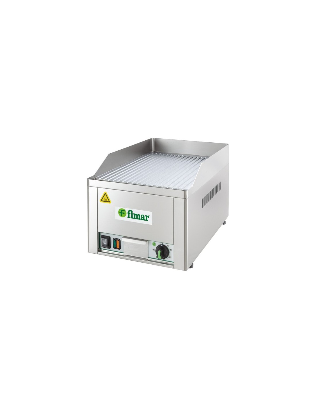 Fry top elettrico di Fimar per cottura a secco o ad olio di carne e pesce. Piastra Fry top elettrico da banco con Superficie Rigato in acciaio cromato