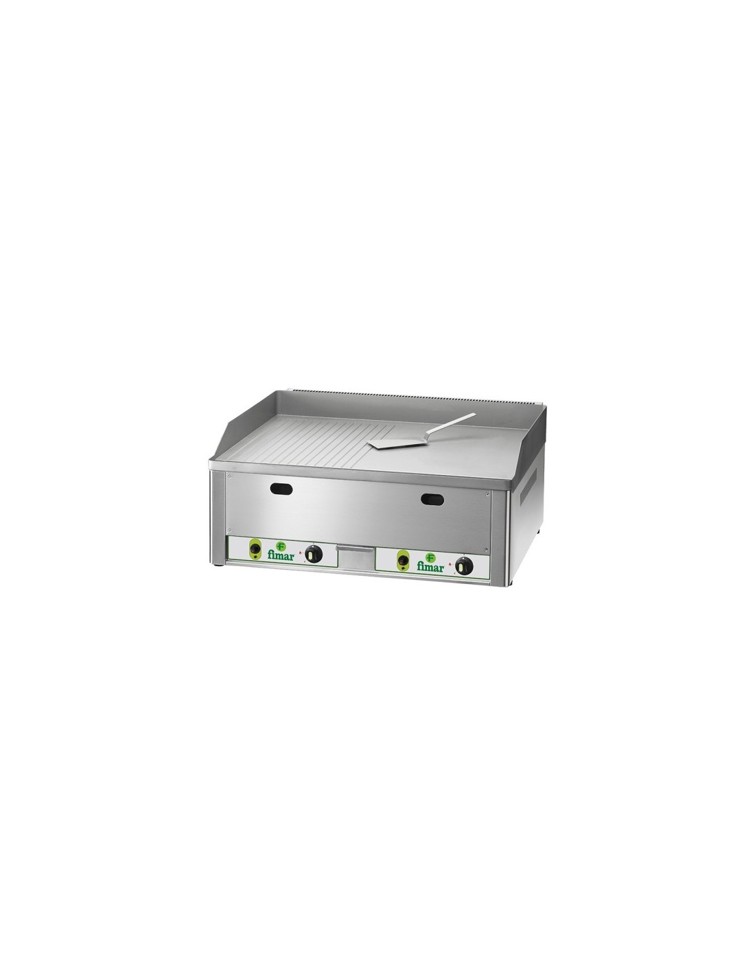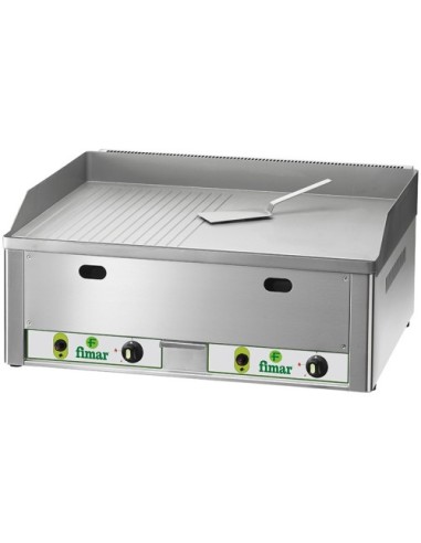 Fry top a gas Fimar con Struttura in Acciaio Inox. Fry top a gas da banco con piastra doppia liscia e rigata, 2 bruciatori. Alimentazione a gas metano, in dotazione kit G.P.L