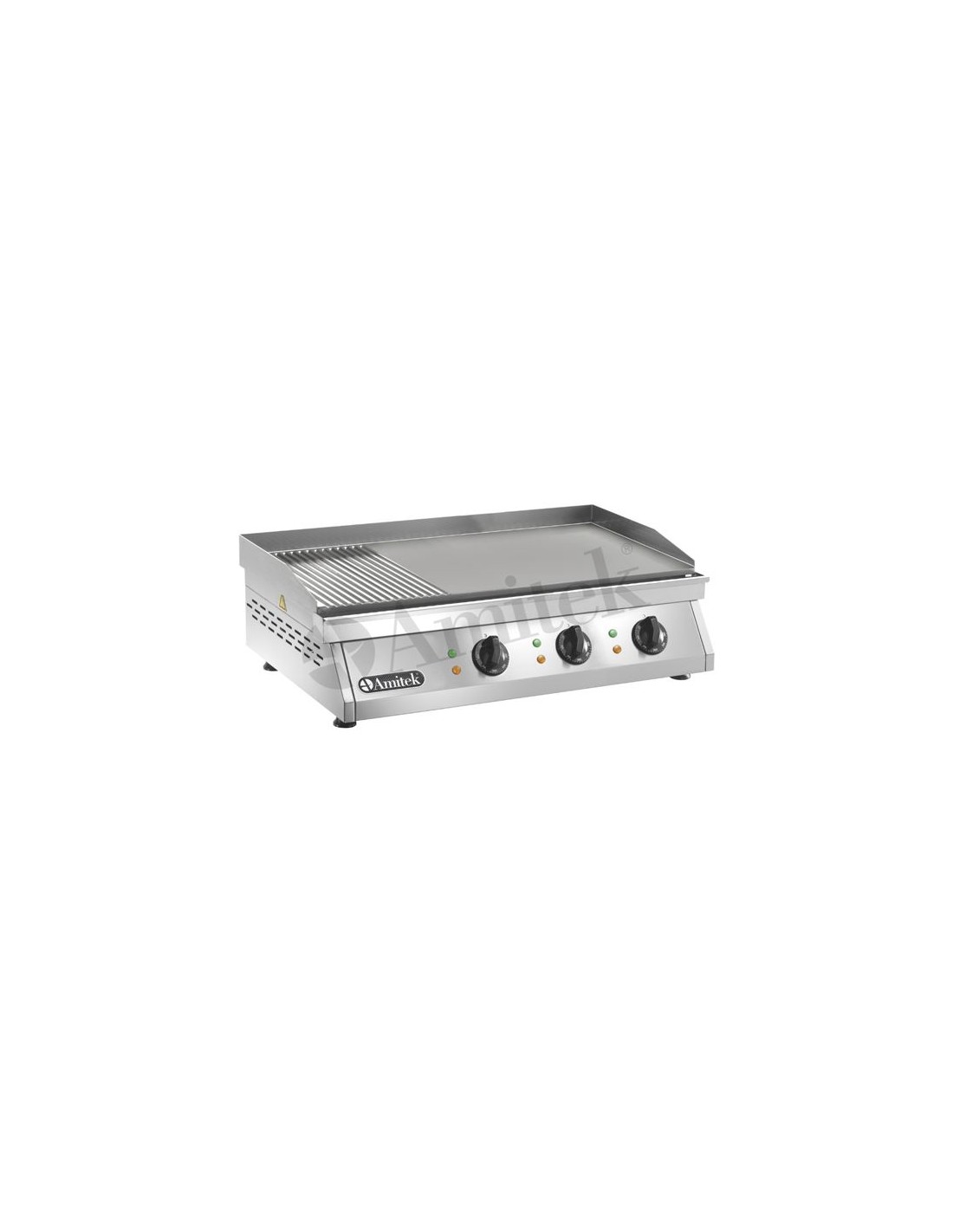 Piastra di cottura di Amitek. Fry top elettrico con piano cottura in acciaio liscio e rigato. Struttura in Acciaio Inox