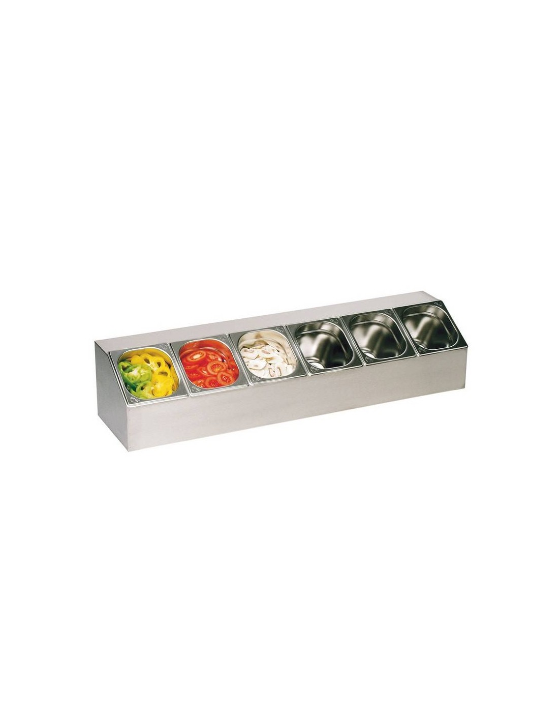 Espositore per bacinelle Gastronorm da banco in acciaio. Espositore per 6 bacinelle gaastronorm 1/6 altezza 150 mm