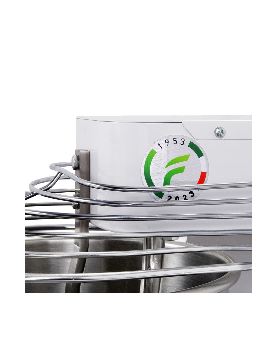 Impastatrice a spirale Fama Industrie con griglia frontale. Impastatrice a spirale 10 litri con testa e vasca fissa con capacità impasto 8 kg.