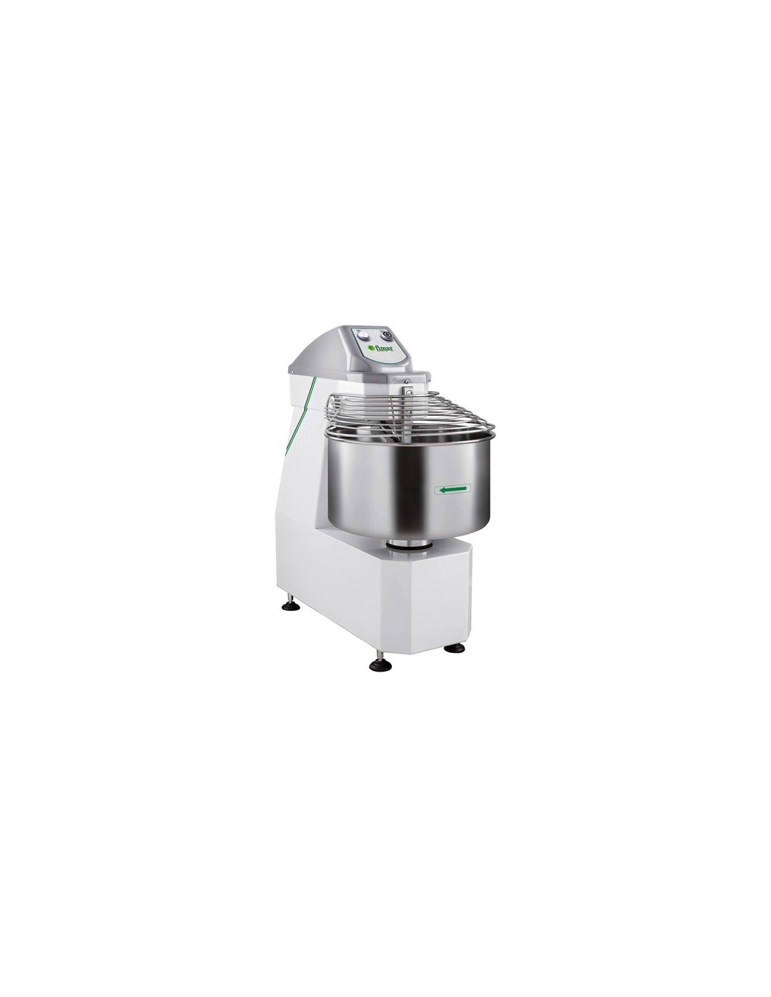 Impastatrice a spirale di Fimar. Impastatrice a spirale professionale capacità 62 litri con testa e vasca fissa con 1 velocità, indicata per impasti teneri come pane, pizza e piada
