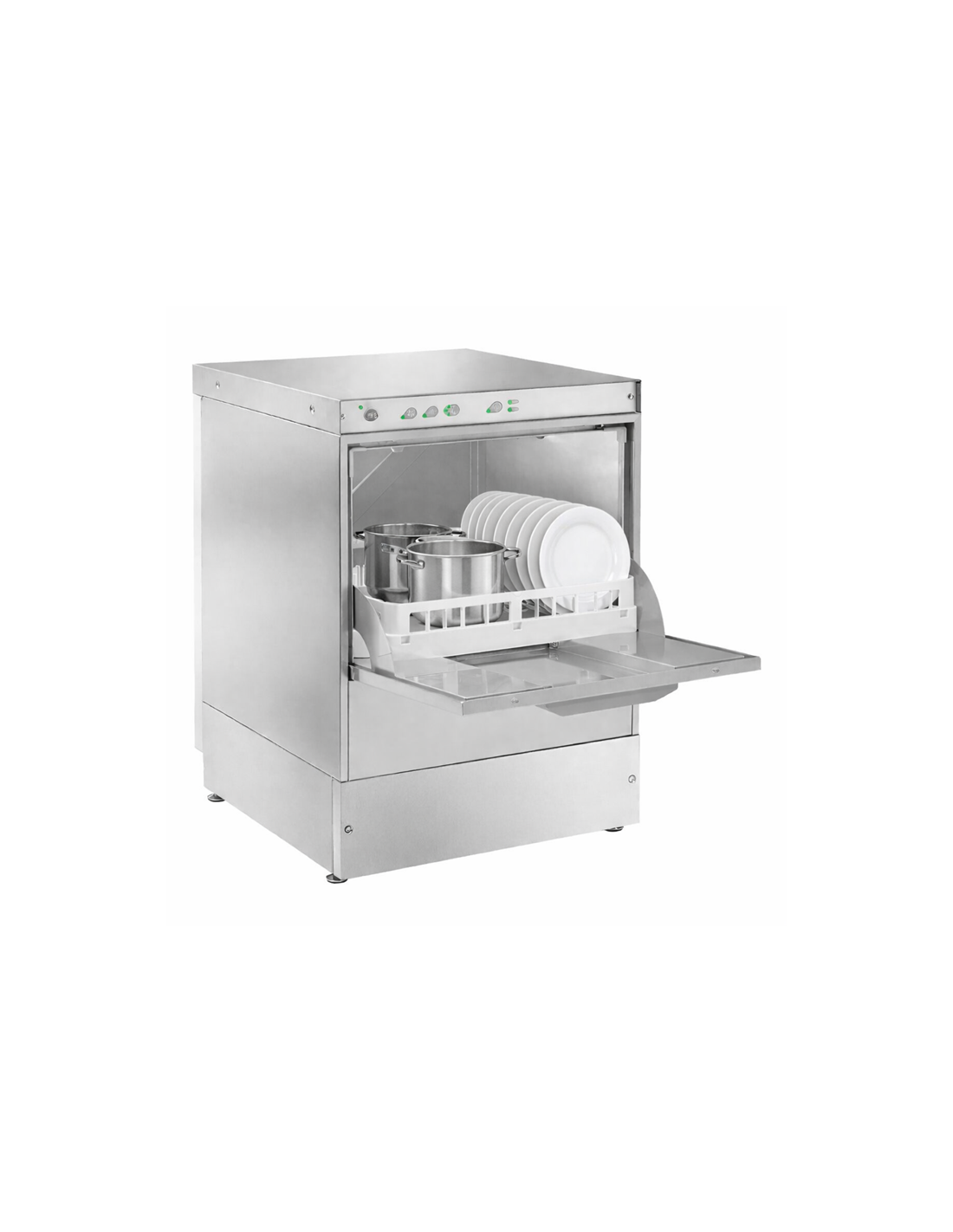 - In dotazione: 1 cestello bicchieri 50x50cm, 1 cestello piatti 50x50cm, 1 contenitore posate. dosatore brillantante e dosatore detergente, pompa di scarico
