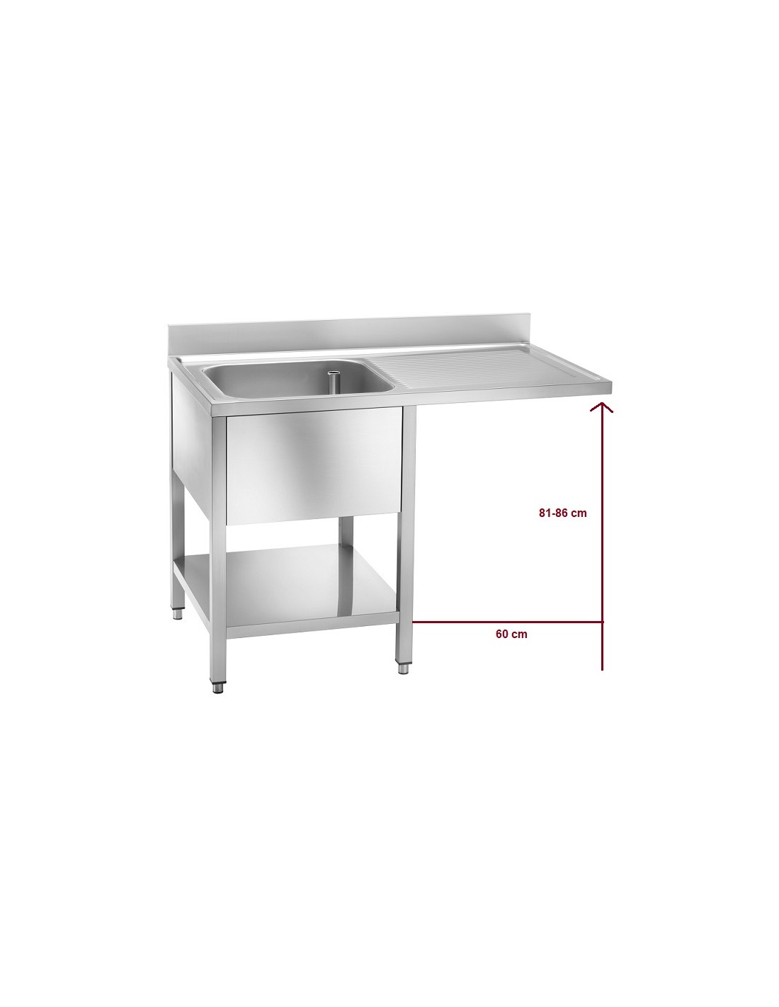 Lavello a Sbalzo per Lavastoviglie. Lavello a sbalzo in acciaio inox una vasca a sinistra e ripiano inferiore. Dimensione vasca 600x500x300h