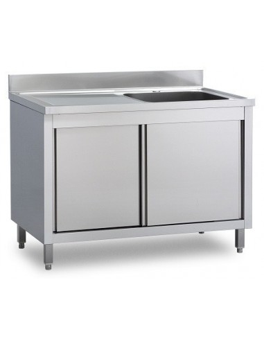 Lavello Armadiato in acciaio inox con ante battente, una vasca e gocciolatoio. Dimensione cm 100x60x85h