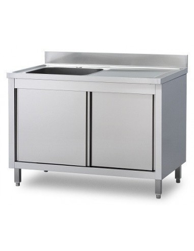 Lavello armadiato con una vasca e ante battenti. Top con alzatina paraspruzzi con vasca inclinata verso lo scarico; Vasca con fondo insonorizzato; Bordo piano mm 40;