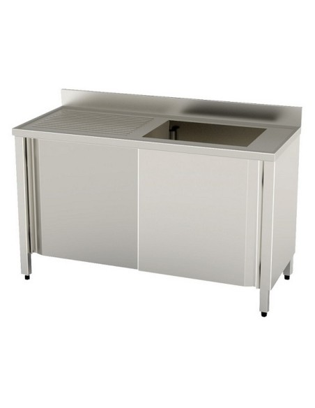 Lavello armadiato con porte scorrevoli per cucine professionali, macellerie e pescherie