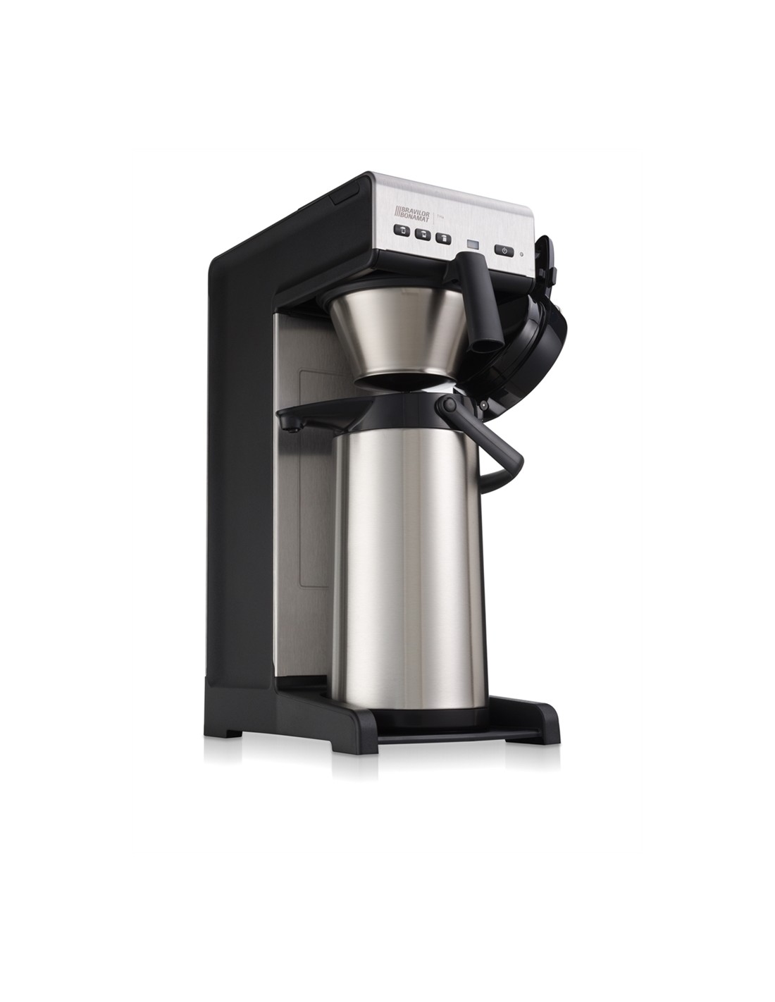 Macchina per estrazione del caffè Bravilor Bonomat tramite filtro di carta. Estrae fino a 19 litri per ora. Completamente in acciaio inox. In dotazione coppa filtro in acciaio inox, Termos escluso.