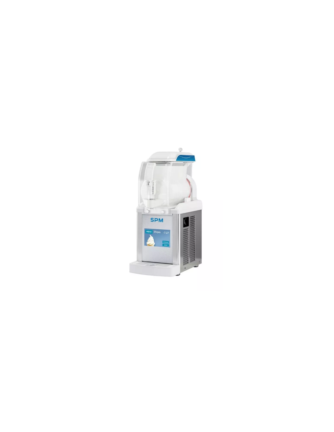 Funziona con prodotti in polvere a base acqua o latte oppure con mix già pronti da versare nella vasca. L'ottimo rapporto qualità/prezzo è ulteriormente valorizzato dall'elevato overrun del prodotto erogato.