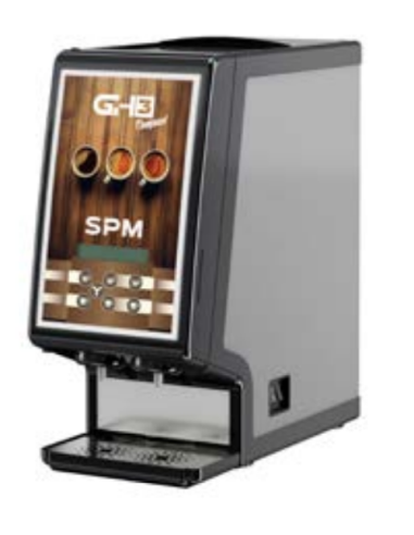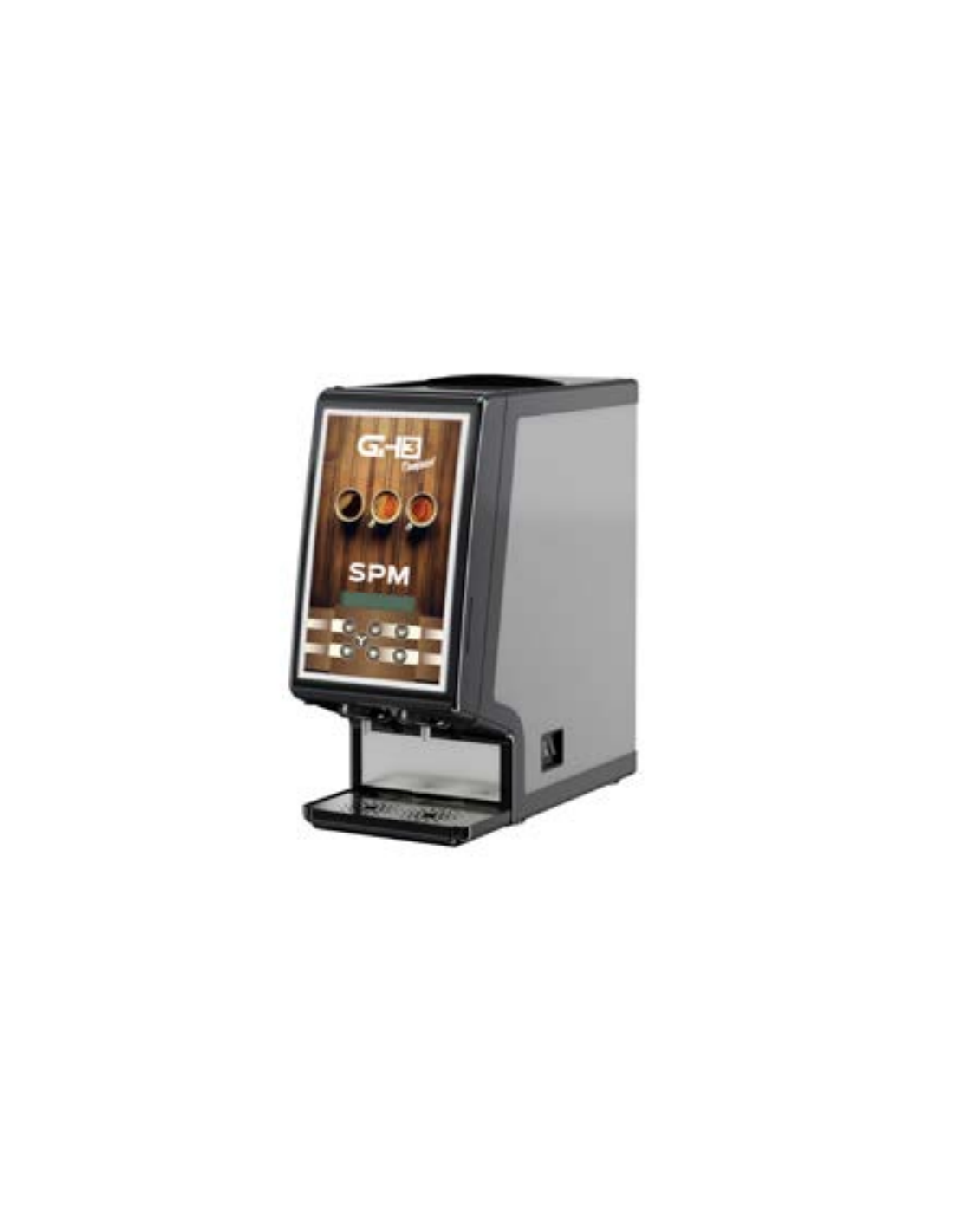 Erogatore per Bevande Solubili SPM. Erogatore per bevande calde per 3 gusti, versione nera e luce led. Un pannello frontale retroilluminato personalizzabile per un look elegante. Contenitori per la polvere completamente removibili e un nuovo pannello superiore scorrevole per facilitare il riempimento del serbatoio dell’acqua