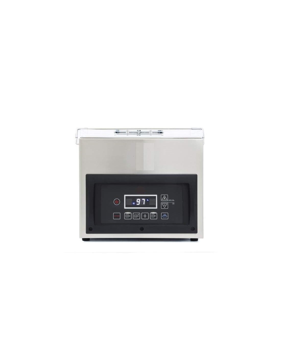 - Vuoto controllato mediante sensore di alta precisione: risultati precisi e coerenti sempre, indipendentemente dalla quantità da confezionare. Opzione di vuoto plus una volta raggiunto un vuoto del 99%. Pulsante “pausa” per la marinatura degli alimenti nella camera. Sicurezza nel confezionamento dei liquidi grazie al controllo con sensore