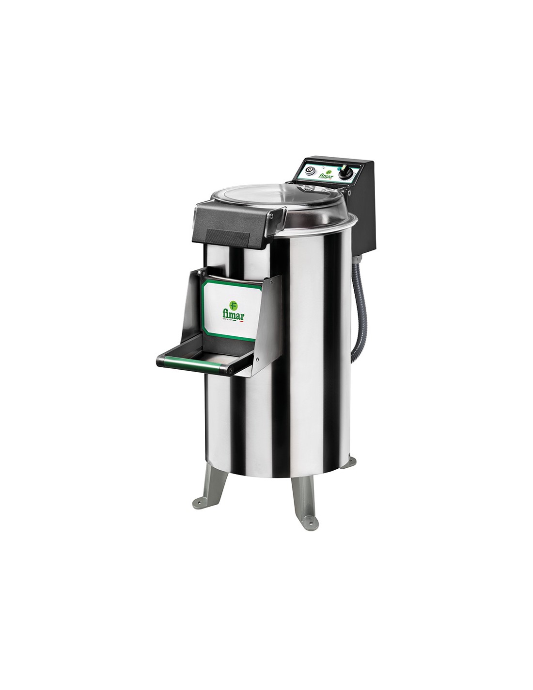 Pelapatate elettrico Fimar con Struttura in acciaio inox. Il pelapatate professionale è dotato di Coperchio superiore in policarbonato alimentare trasparente