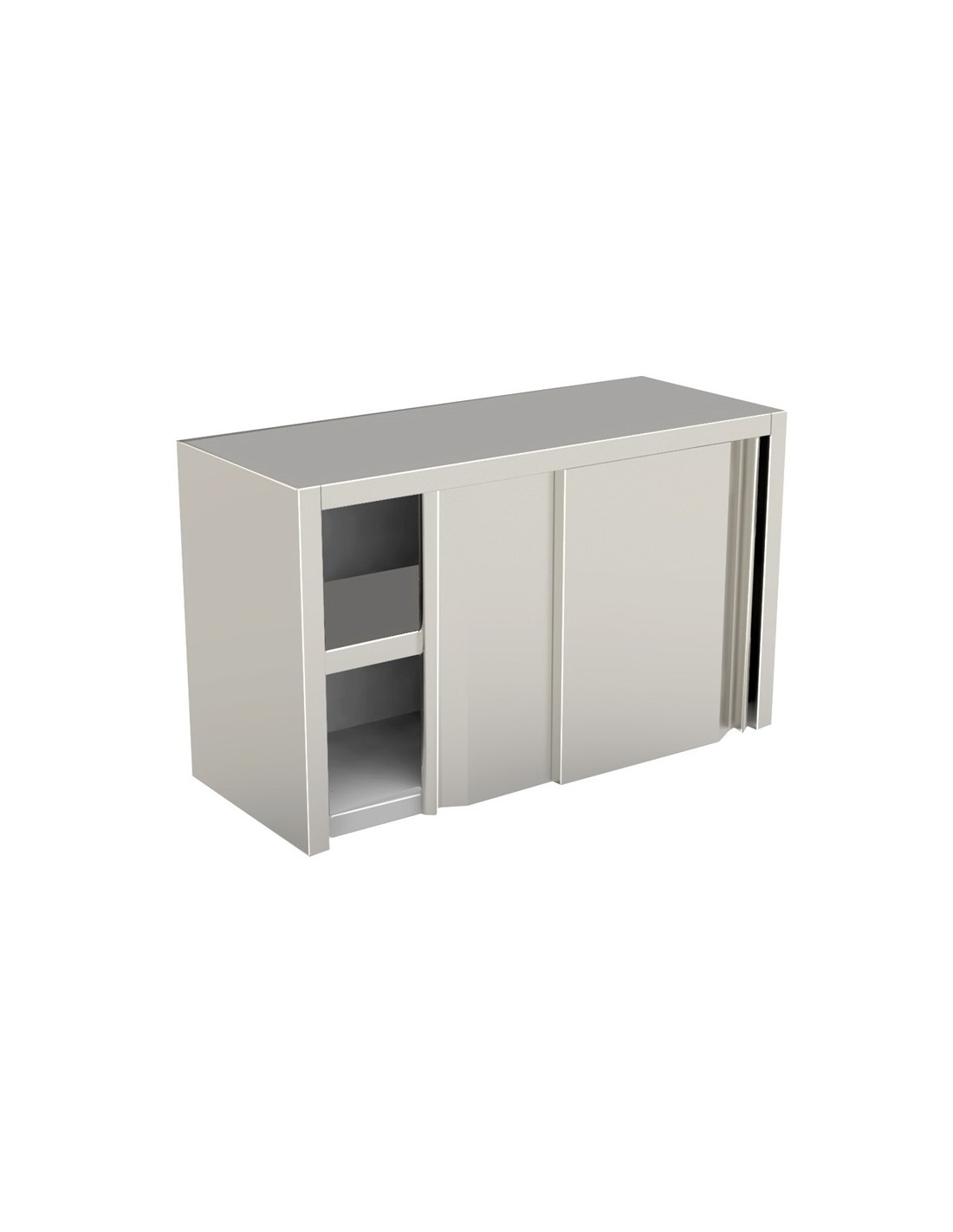 Pensile inox con ante scorrevoli Dimensione 1000x400x600h mm. Il pensile inox con ante scorrevoli e ripiano intermedio è una soluzione pratica e robusta per l’arredo delle cucine professionali.