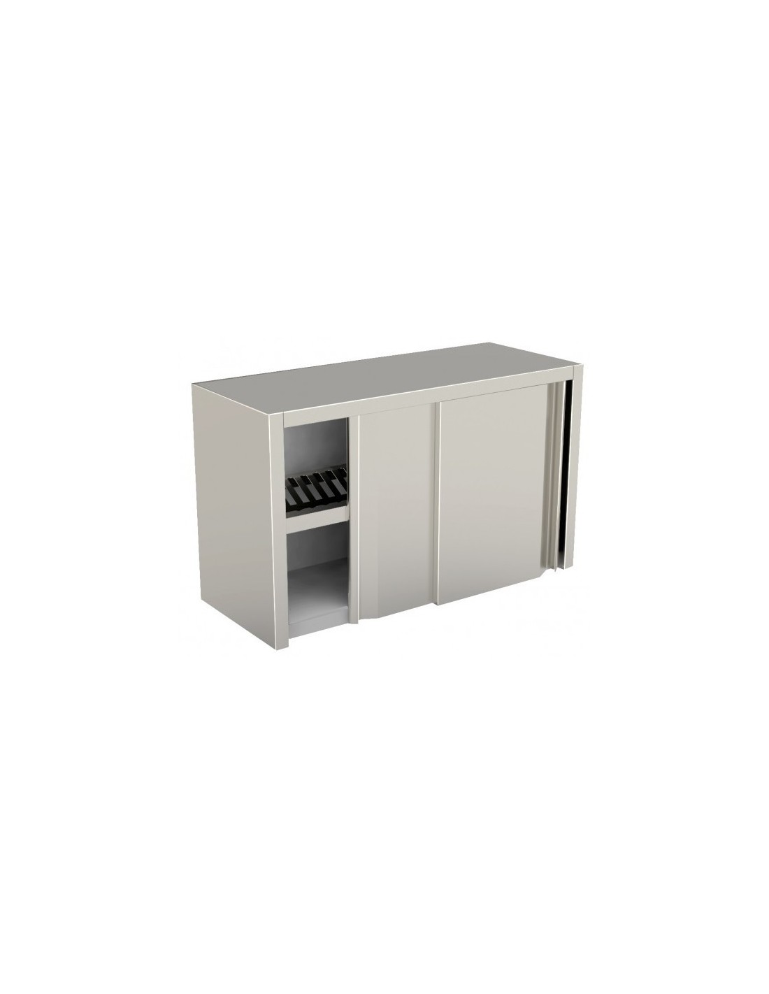 Pensile Inox Scolapiatti con Ante Scorrevoli e base asolata per cucine professionali e industriali. Dimensione pensile cm 120x40x60h