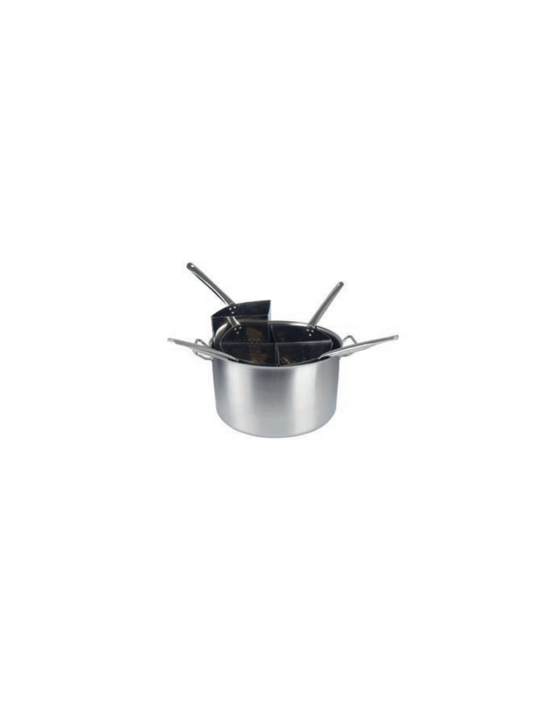 Casseruola per pasta con fondo ad induzione per cuocere contemporaneamente vari tipi di pasta.