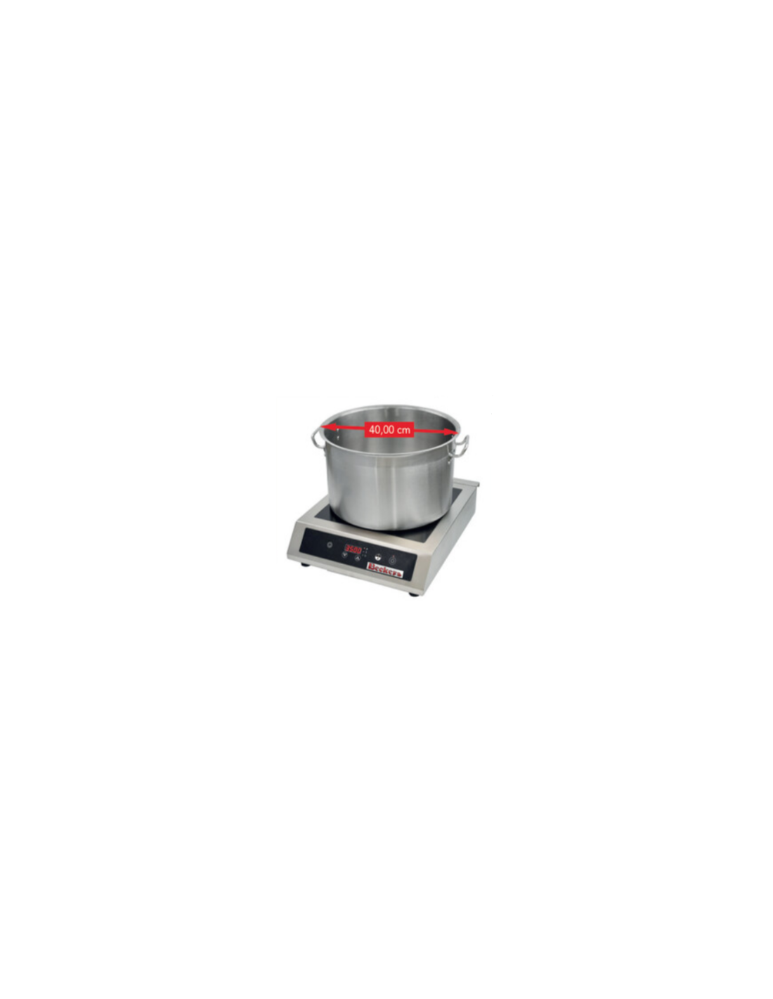 Piastra a induzione da banco Beckers con Superficie in Vetroceramica per pentole e casseruole con diametro Max di 40 cm con Display LED. Questo modello di piastra induzione ha 10 livelli di potenza.