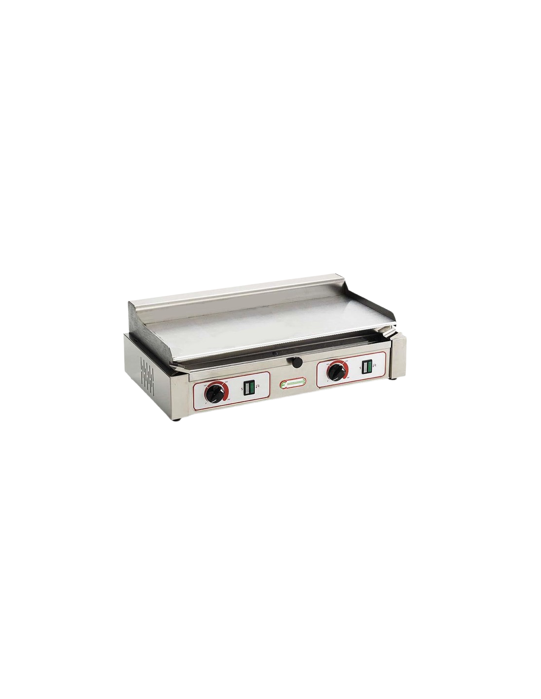 Piastra elettrica doppia in acciaio cromato senza coperchio. Superficie utile 550x242 mm