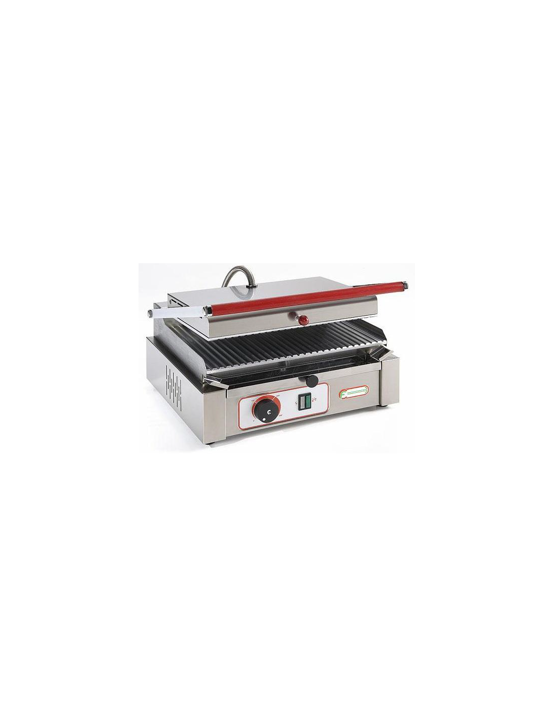 Piastra Elettrica in acciaio cromato rigata con coperchio rigato Superficie Utile 270x242 mm. Piastra elettrica rigata professionale per cuocere e riscaldare alimenti come carne, pesce, piadine, verdure, hamburger, toast farciti, panini e pizze
