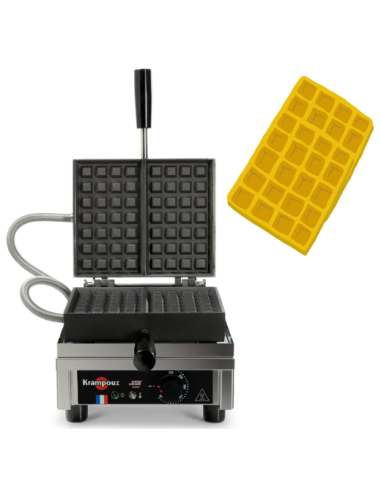 Macchina per waffle 4×7 Tipo Liège di Krampouz può scaldare due waffle contemporaneamente. Le sue piastre si aprono a 90° per un risultato uniforme. Dimensione Waffle 191x110x24 mm. La cialda 4×7 (realizzata su una piastra da 4 x 5 quadrati)