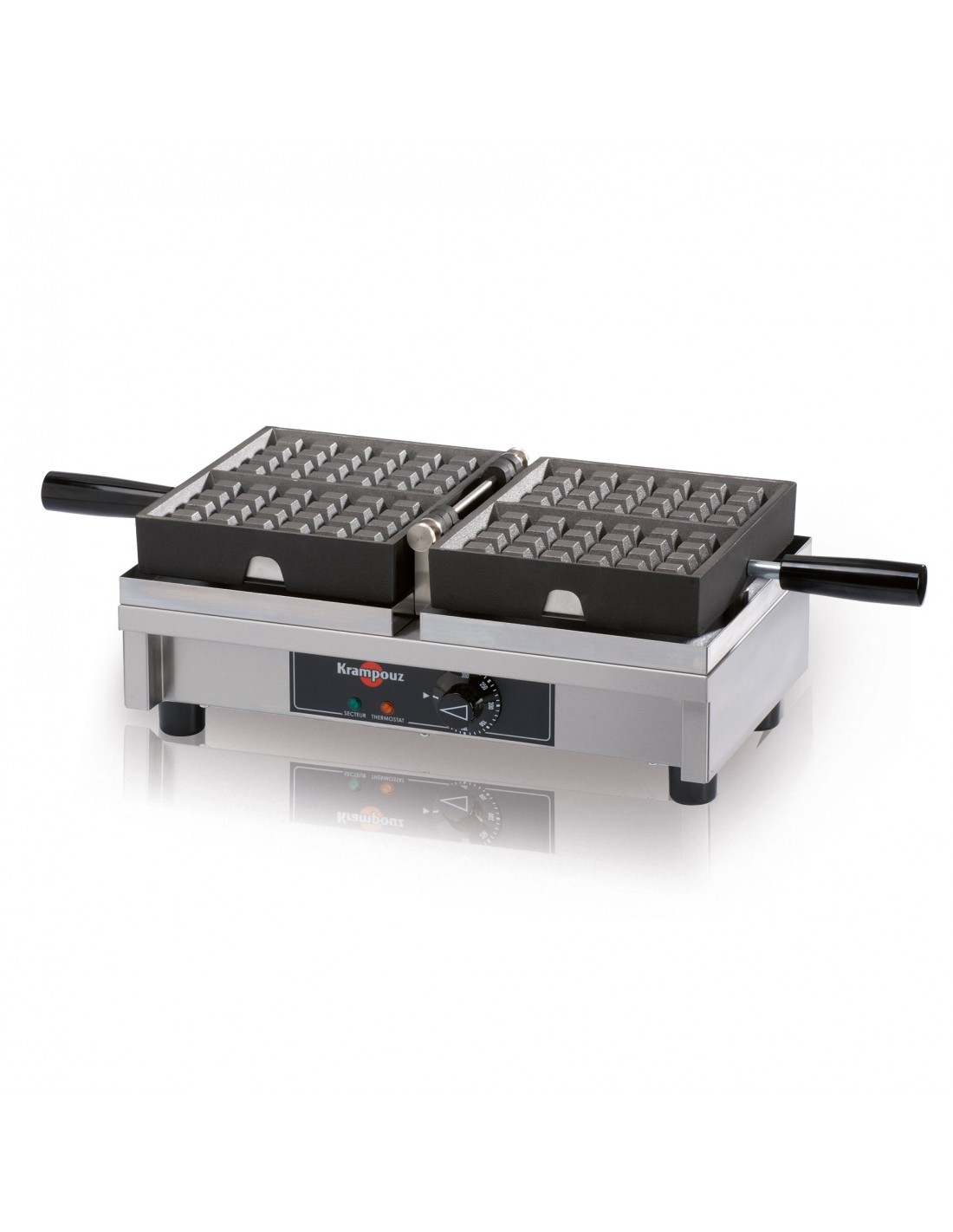 Piastra waffle di Krampouz. Piastra per cottura waffle tipo bruxelles con apertura piastra a 180°. Dimensione waffle 182x113x28 mm. Idonea per impasto classico semiliquido oppure per la cottura e riscaldamento di preparati